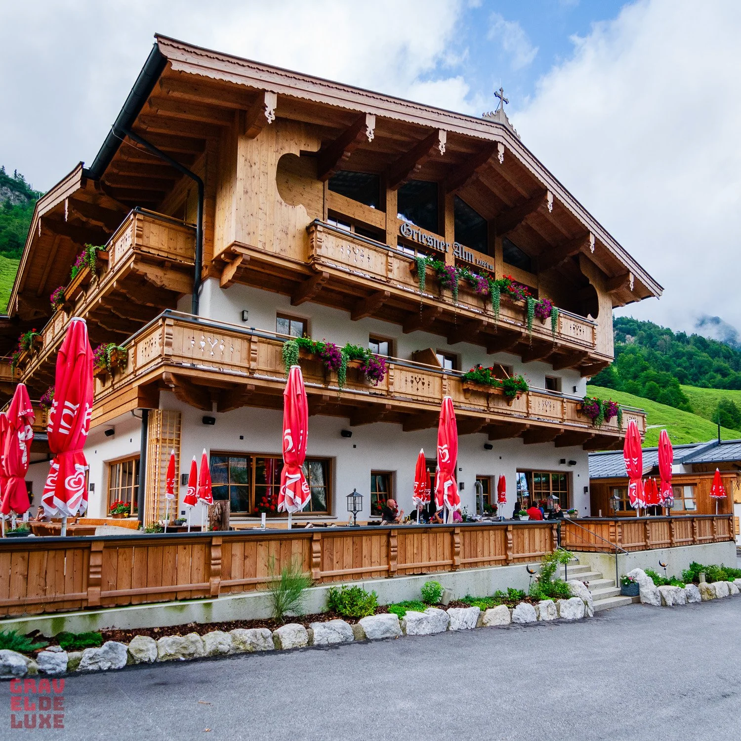 Ab jetzt sind wir auf den klassischen Almstraßen unterwegs – ihr wisst schon, die, die ihr sicher auch schon mal beim Wandern in den Alpen gesehen habt und euch gefragt habt: „Kann man da mit dem Gravelbike fahren?“ Die Antwort lautet: Ja, definitiv!